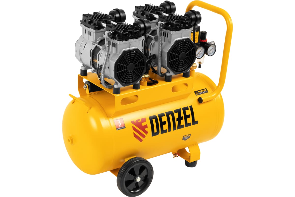 Компрессор безмаслянный малошумный Denzel DLS 2200/50 (2200 Вт//380 л/мин/50 литров ресивер)