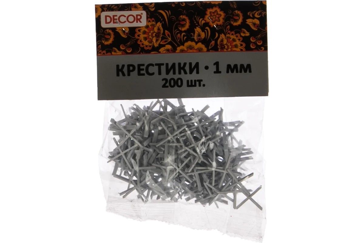 Крестики Decor для кафеля - это крестовидные распорные детали, которые применяются при выполнении облицовочных работ и предназначены для точного выдерживания межплиточного расстояния, а также для выравнивания рядов укладываемой керамической плитки.