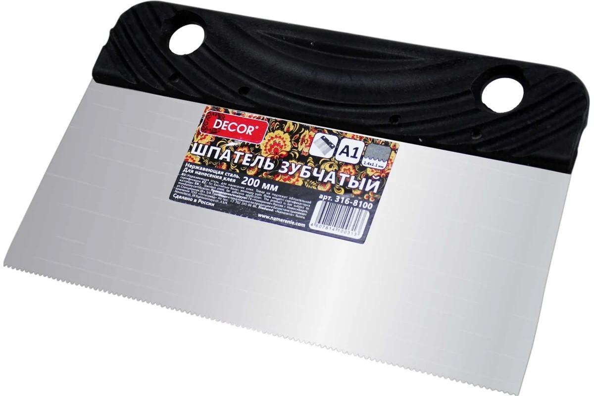 Шпатель зубчатый 200мм A1 для нанесения клея DECOR 316-8100