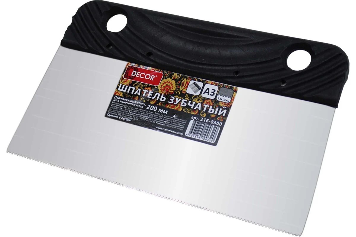 Шпатель зубчатый 200мм A3 для нанесения клея DECOR 316-8300