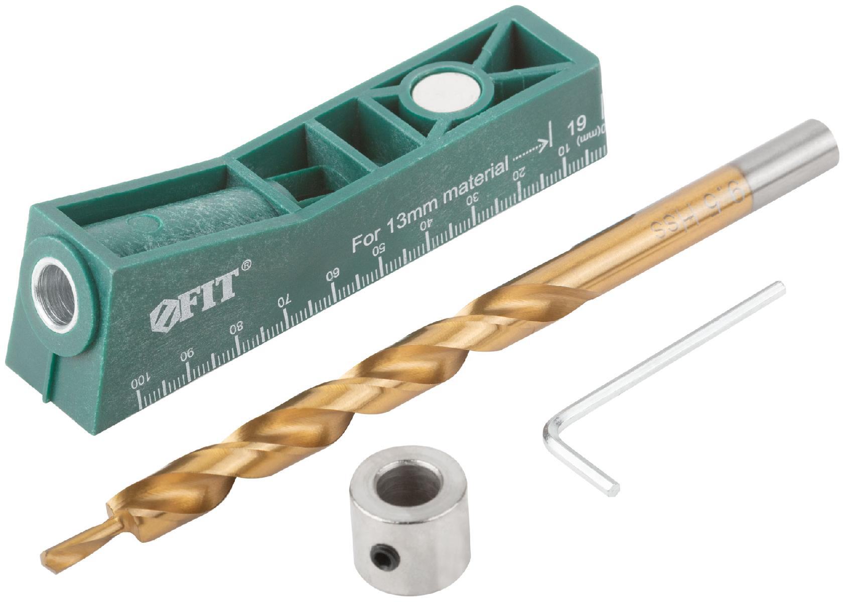 Материал: кондуктор - нейлон, инструментальная сталь, ферритовый магнит; сверло из быстрорежущей (HSS) стали с нитрид-титановым покрытием; ключ и ограничитель из инструментальной стали.