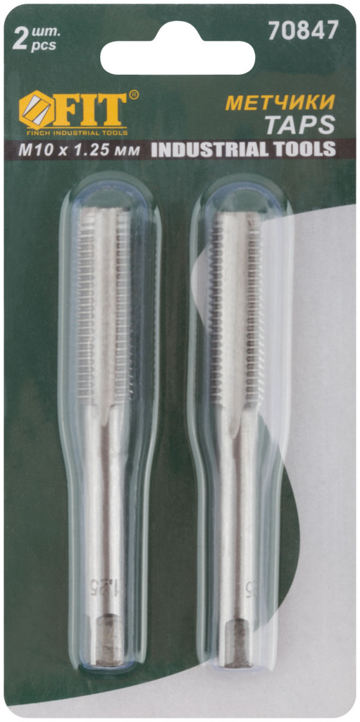 Метрические метчики 10х1.25 мм 2 шт FIT IT 70847 создают точную резьбу, применяются с электрической дрелью.