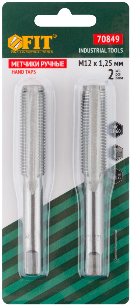 Метрические метчики 12х1.25 мм 2 шт FIT 70849 используются при создании резьбовых отверстий.