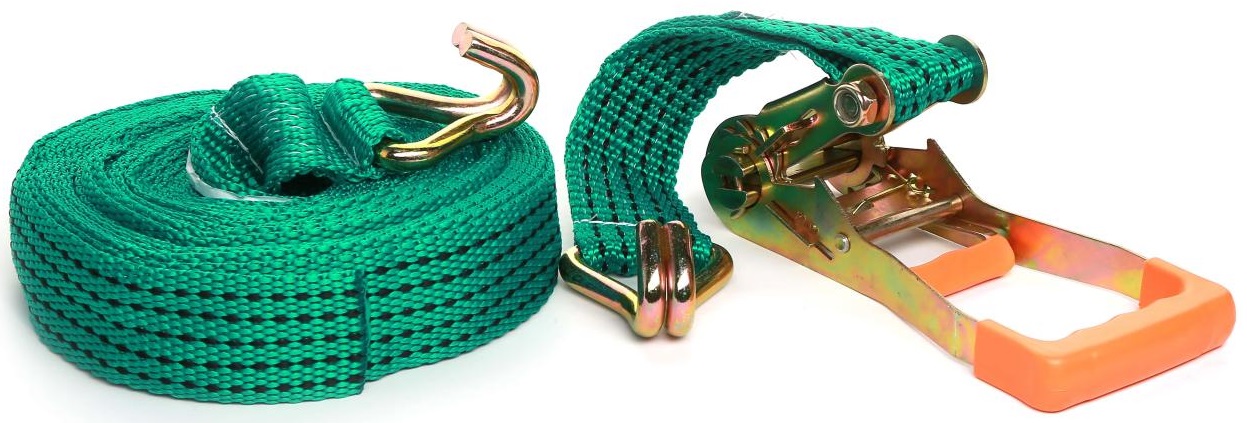 Лента морозостойкая и влагостойкая, устойчива к негативному воздействию окружающей среды, технического масла и прочих химических веществ и не истирается со временем. Крюки выполнены из стали. Надежный храповой механизм предотвращает ослабление натяжения ленты, тем самым надежно фиксирует груз.