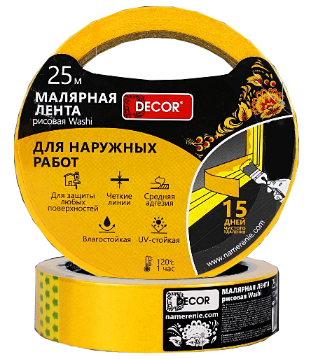 Малярная лента для внутренних работ изготовлена из японской рисовой бумаги Washi - ультратонкая основа ленты обеспечивает самые ровные окрашенные края.
