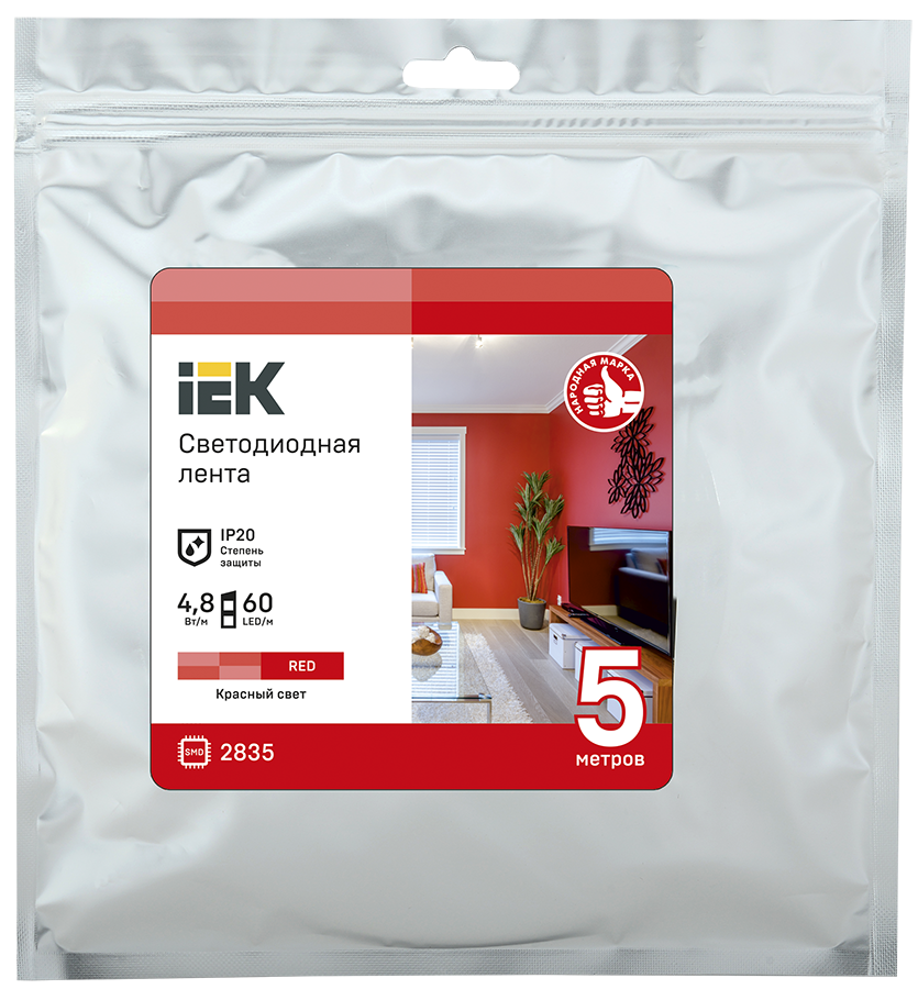 Лента светодиодная 5м блистер LSR-3528R60-4,8-IP20-12В IEK красный