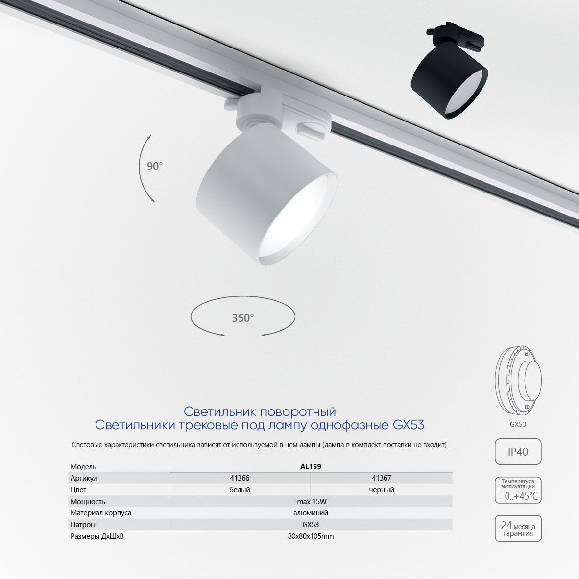 Светильник трековый под лампу GX53 черный AL159 41367