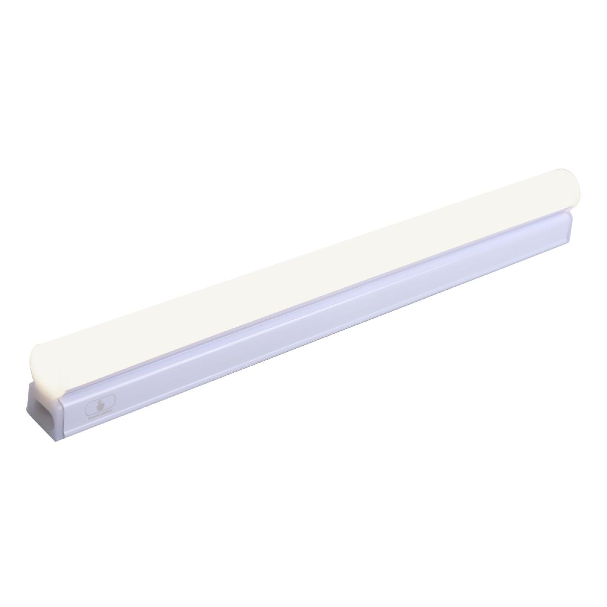 Сенсорный светодиодный светильник Т5 30-01 управляется одним касанием благодаря сенсорному выключателю. Излучает световой поток в 420 Лм, потребляя при этом 4 Вт, что является эквивалентом лампы накаливания 40 Вт. В светильнике используются светодиоды с дневным белым цветом свечения и цветовой температурой 4000 К, которая наиболее близка к естественному солнечному свету. Корпус и рассеиватель светильника сохранят свой первозданный вид и светорассеивающие качества на протяжении всего срока эксплуатации благодаря тому, что изготовлены из поликарбоната, который устойчив к воздействию температур и солнечного света. Размер светильника 305х23х35мм. Степень защиты светильника от пыли и влаги соответствует стандарту IP20, что подразумевает эксплуатацию в сухих, проветриваемых помещениях. В комплекте: сетевой шнур длиной 950 мм, коннектор для гибкого соединения длиной 150 мм и коннектор для жесткого соединения светильников, торцевая заглушка, крепежные элементы для фиксации в накладном варианте. Количество светильников, которые можно соединить последовательно, 14 шт. Благодаря надежному драйверу светодиоды защищены от скачков напряжения, а сам светильник сохраняет равномерное свечение. Работает от сети с напряжением 230 В.
