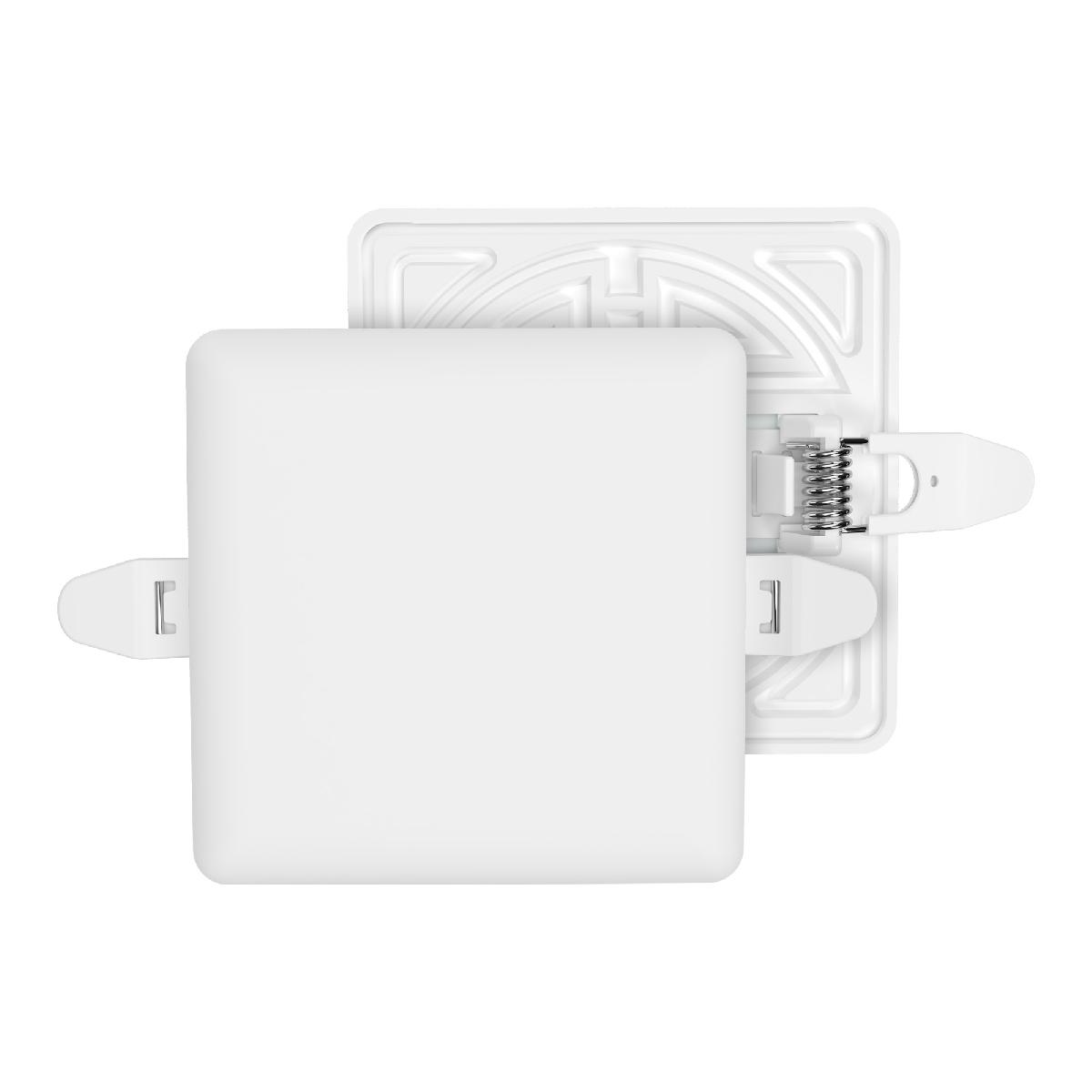 Светодиодная встраиваемая безрамочная панель 06-112 излучает световой поток в 770 Лм, потребляя при этом 9Вт (6Вт+3Вт), что в итоге дает энергоэффективность 85 Лм/Вт. Особенностью данного изделия является 3-х ступенчатая регулировка уровня освещенности путем нажатия клавиши выключателя: 1) освещение всей поверхности плафона, угол рассеивания 180°; 2) концентрированное освещение внутреннего диаметра, угол рассеивания 120°; 3) засветка торцевой части панели, эффект «кольцевого освещения». Вторая особенность панели – регулировка крепежных зажимов под посадочное отверстие Ø55-75 мм. Третья особенность – безрамочный дизайн плафона, благодаря чему возможна повышенная освещенность с углом рассеивания 180°. Размер изделия 90х90х21мм. Цветовая температура 4000К наиболее близка к естественному солнечному свету. Отдельный от корпуса драйвер имеет компактный размер. А благодаря удобному коннектору для соединения со светильником может быть легко заменен. Панель по способу монтажа является встраиваемой.