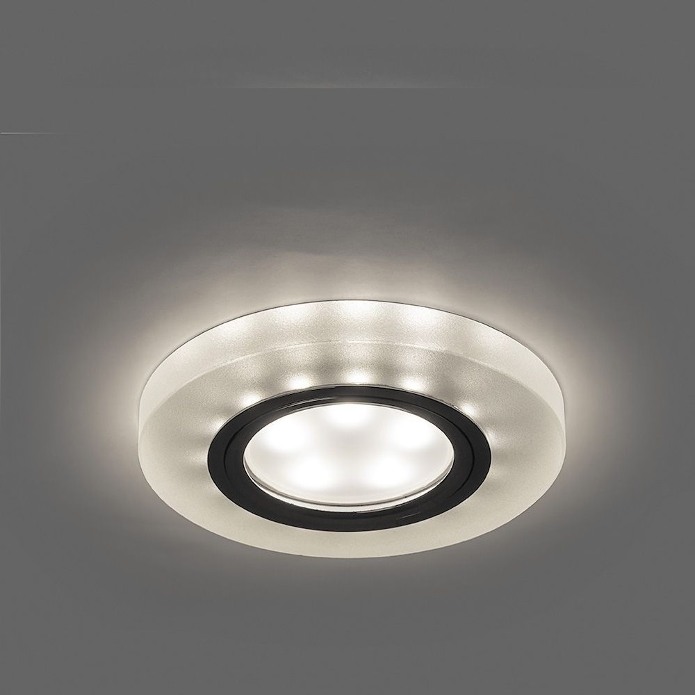 Светильник потолочный встраиваемый (ИВО) FERON CD8060, под лампу с LED подсветкой 15LED*2835 SMD 4000K, MR16 G5.3, белый матовый хром, круг, 90*90*20 мм, монтажный диаметр 60мм, корпус стекло, неповоротный
