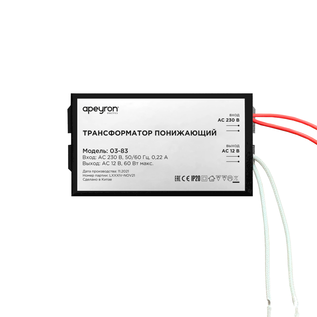 Трансформатор понижающий 60Вт 220В/12В Apeyron