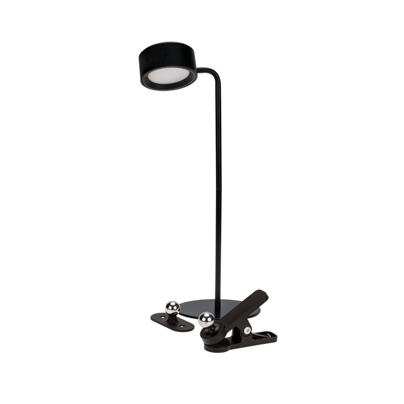Прищепка позволяет закрепить корпус светильника на краях столов или полок.