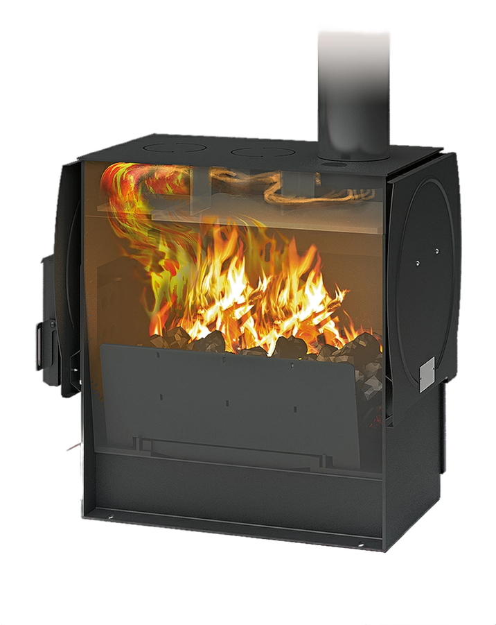 Дополнительные отверстия в дверце печи для подачи воздуха позволяют реализовать функцию вторичного дожига.
