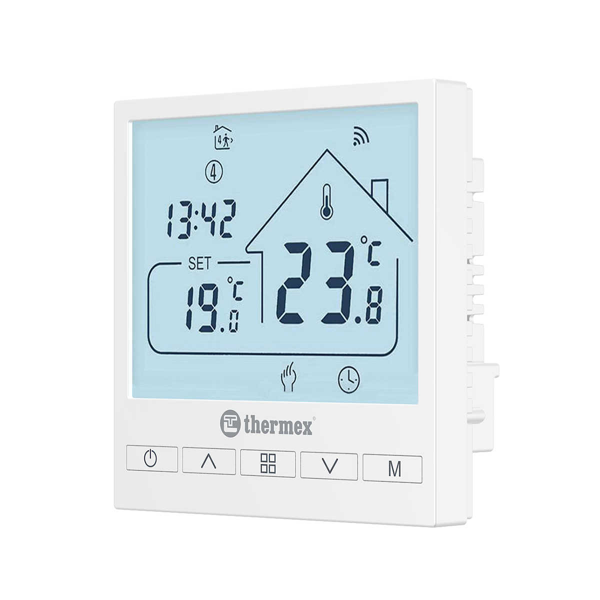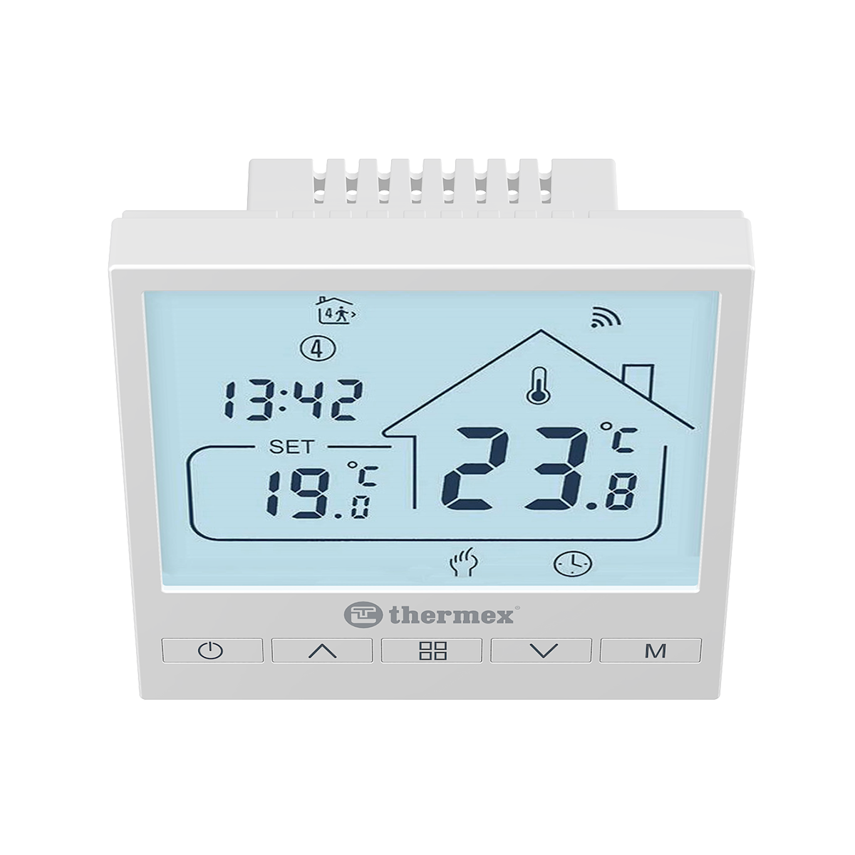 Thermex Axioma Wi-Fi – программируемый комнатный термостат, позволяющий отслеживать актуальную температуру помещения, а также устанавливать необходимые настройки нагрева для поддержания комфортной и оптимальной температуры в доме.