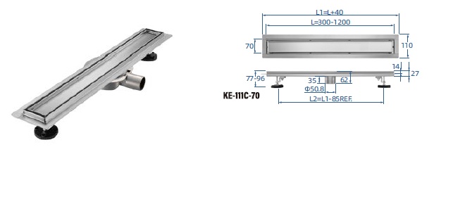 Трап линейный 400мм, нерж.решетка, под плитку, с комбинир. затвором, выпуск горизонт WAVE