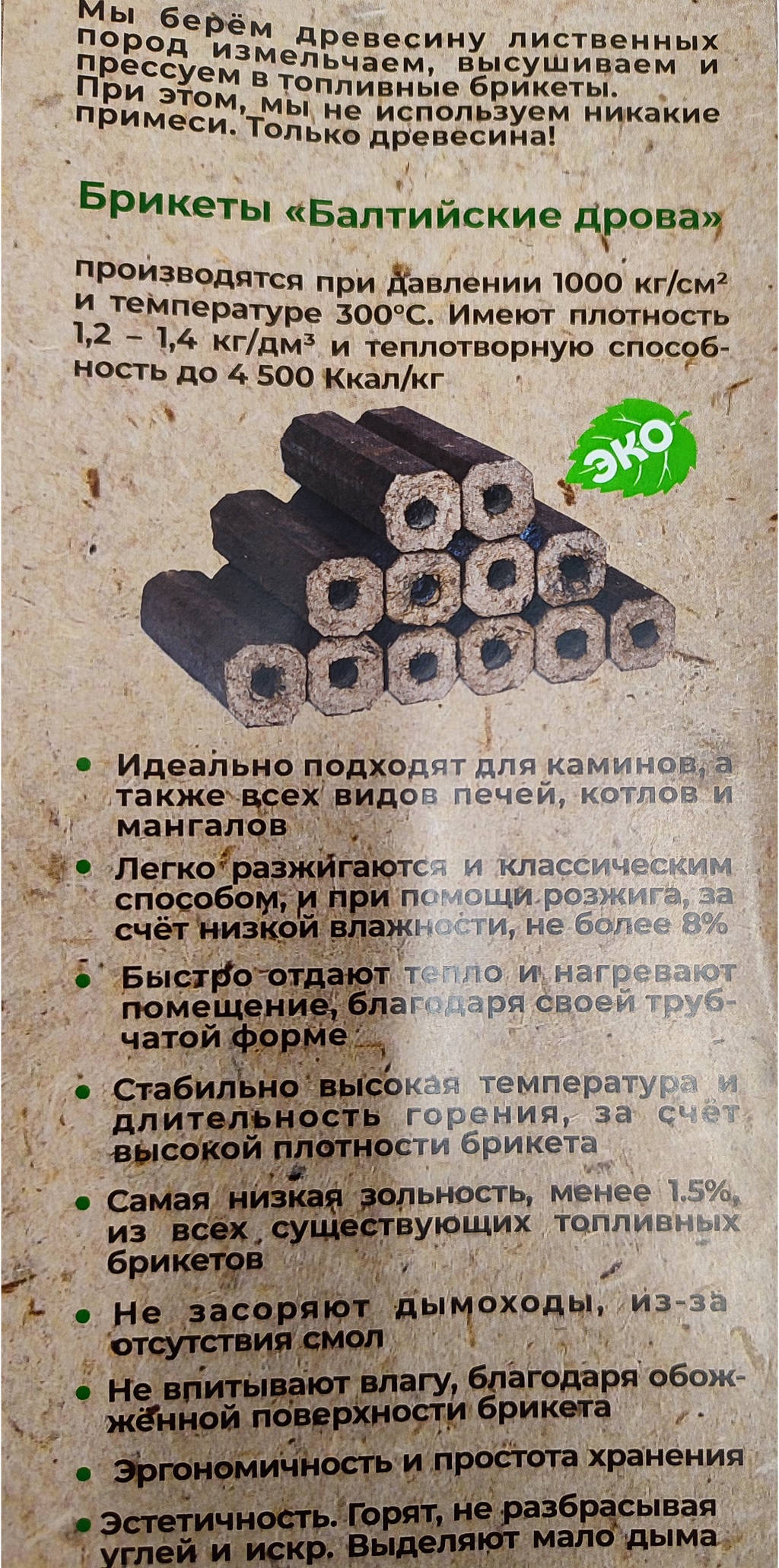 Топливные брикеты "Балтийские дрова" (PINI KAY, 10 кг)