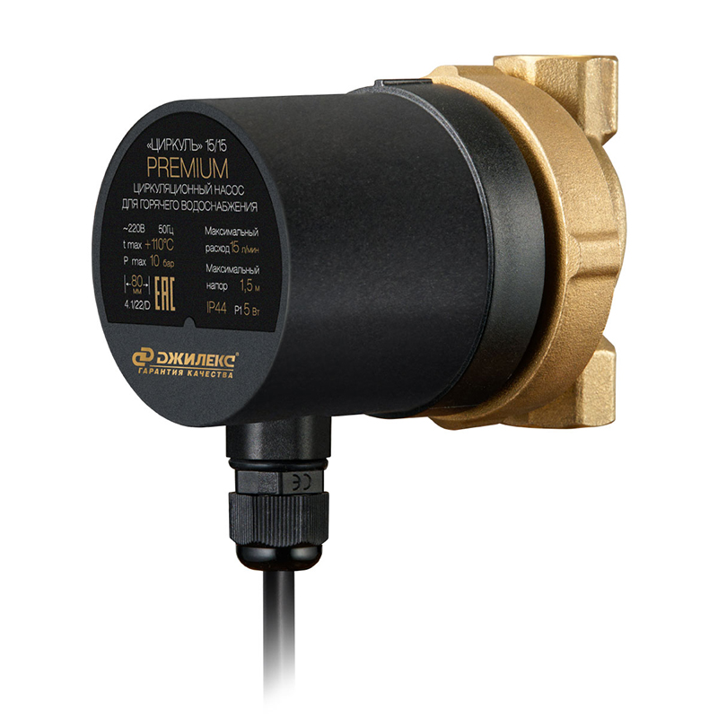 Циркуляционный насос Джилекс Циркуль Премиум 15/15 предназначен для осуществления постоянной циркуляции горячей воды в контуре горячего водоснабжения с присоединительным размером гайки 1/2 дюйма и максимальным напором 1,5 метра.