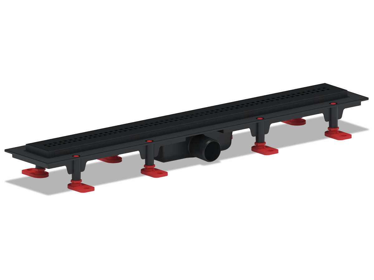 Линейный трап лоток для душа с комбинированным затвором TL1265BL – классическое техническое решение для отвода воды из ванной комнаты. Имеет вытянутую прямоугольную форму, его также называют дренажным каналом или душевым лотком. Сверху конструкция трапа закрывается черной декоративной решеткой из нержавеющей стали. Трап с комбинированным затвором - идеальное решение как при регулярном, так и при нерегулярном водоотведении. Трап устанавливается в пол, общую высоту монтажа можно регулировать от 66 до 102 мм. Трап изготовлен из прочного АБС-пластика, устойчивого к высоким температурам, ударным нагрузкам и воздействию влаги. Отличается надежностью конструкции и продолжительным сроком эксплуатации. Устанавливается по краям или в углах душевой комнаты и фиксируется с помощью крепежных элементов. Внутри корпуса установлен съемный сифон (гидрозатвор) и съемный клапан сухого затвора. Слив горизонтальный, диаметр выпуска 40 мм. Пропускная способность — 35 л/мин. Сверху трап закрывает прямоугольная гладкая черная решетка (нержавеющая сталь с порошковой покраской), которая задерживает мусор, препятствуя забиванию слива, а также выполняет декоративную функцию. На решетку можно становиться, принимая душ: изделие выдерживает нагрузку до 300 кг.