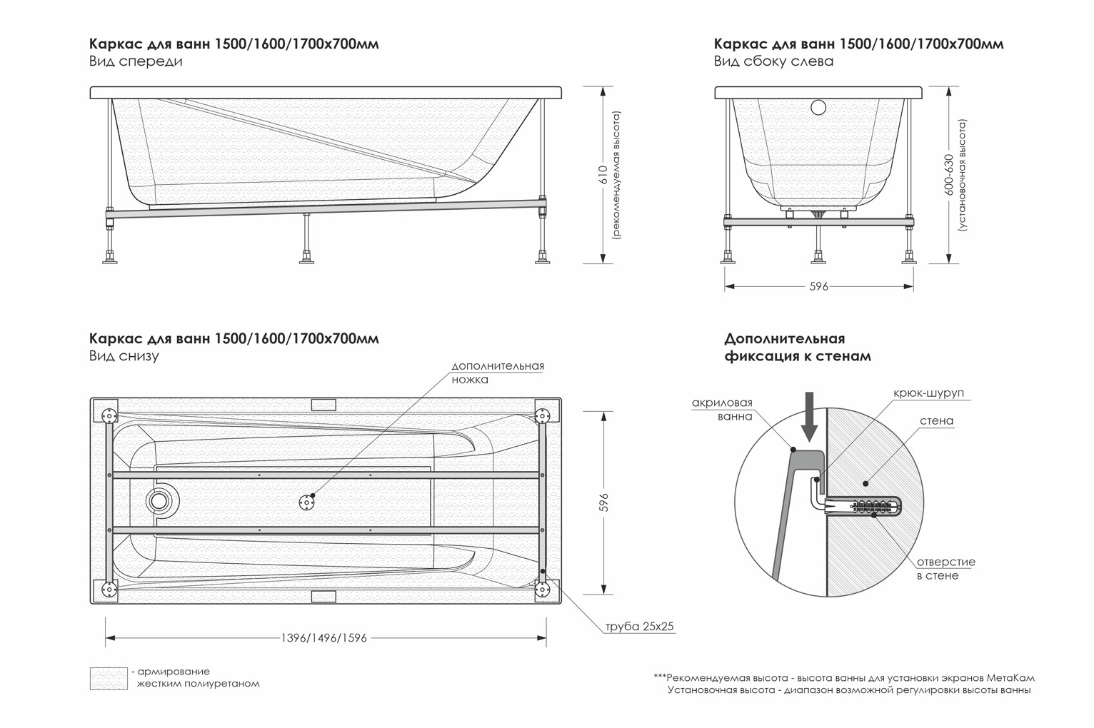 Комплект монтажный для акриловой ванны 1500*700 Universal