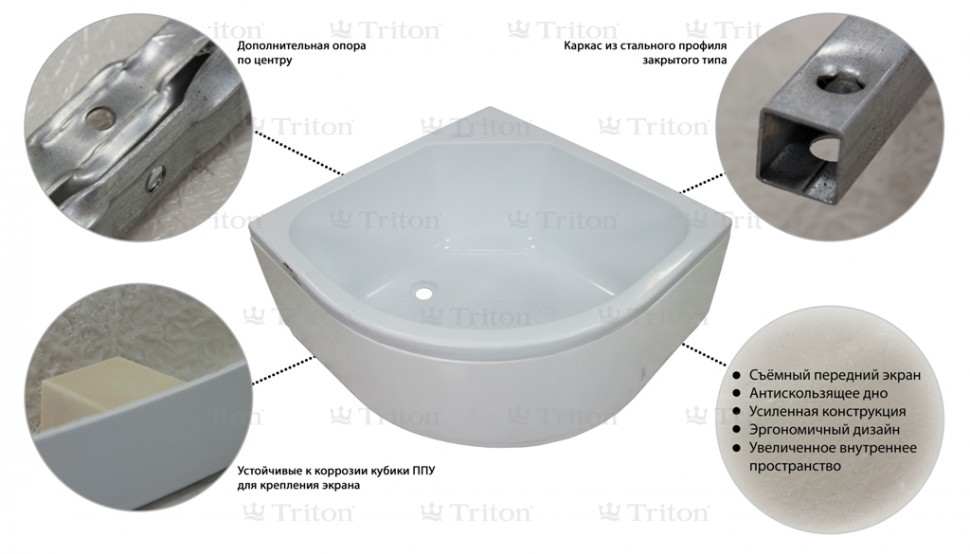 Поддон ПД5 глубокий полукруг 90х90 (сборочный комплект+экран к поддону)