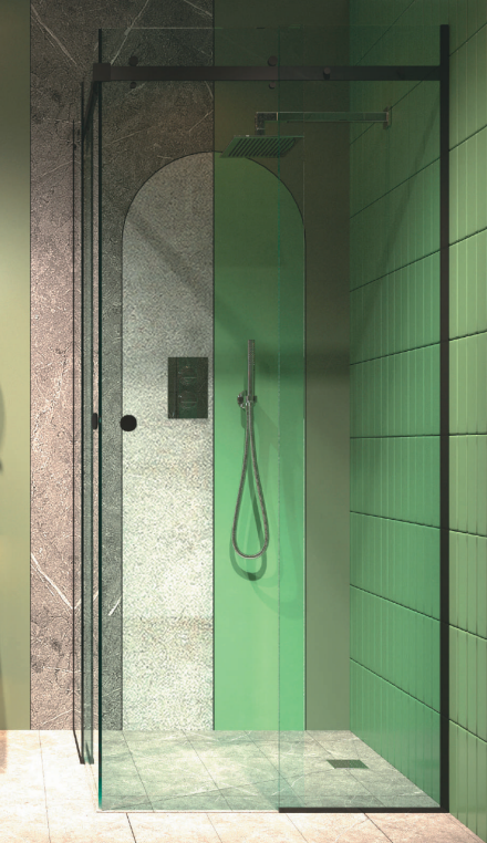 Толстое каленое стекло 8 мм, надежные прочные ролики и стильная черная