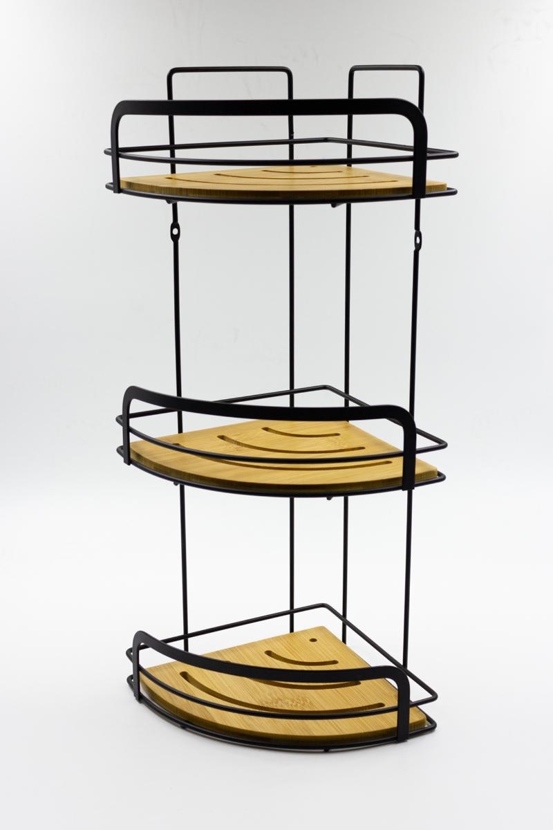3-х ярусная угловая полка Материал: сталь с порошковым покрытием черного цвета, бамбук, ПВХ