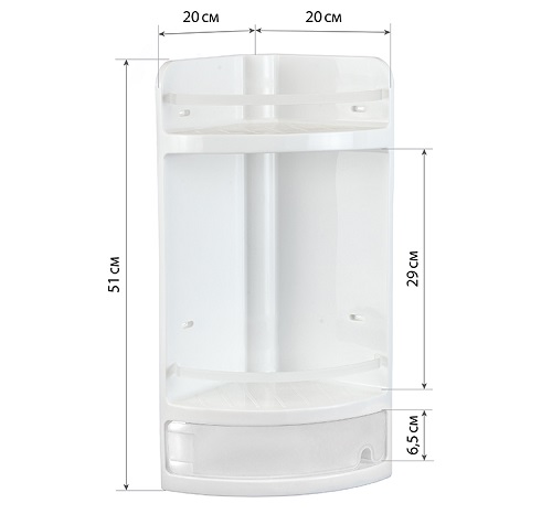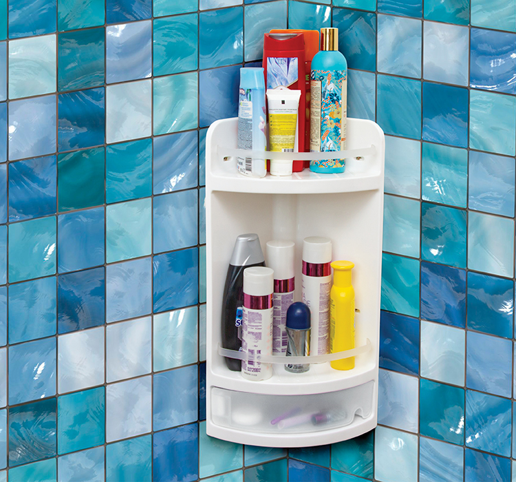 Отлично подойдёт для хранения шампуня, геля для душа, мыльницы, мочалки и для хранения ванных принадлежностей.