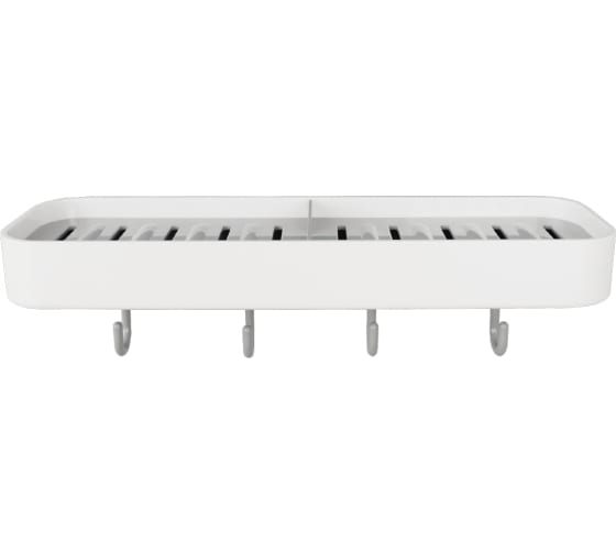Полка для ванной комнаты на липучке LIGHT B6680-1 белая с 4 крючками