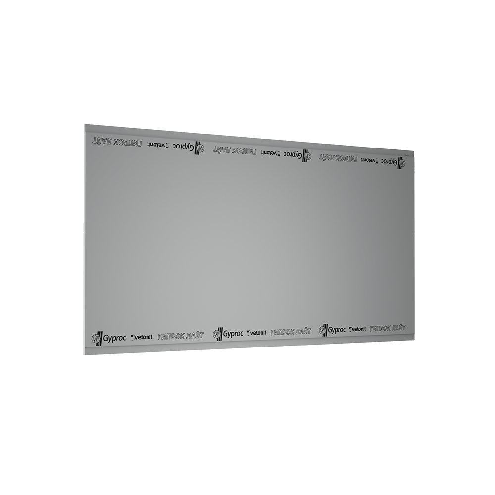 Гипсовая строительная плита Vetonit (Gyproc) Лайт — отделочный материал для устройства конструкций потолков в помещениях с нормальной влажностью. Плита состоит из гипсового сердечника, облицованного картоном светло-серого цвета.