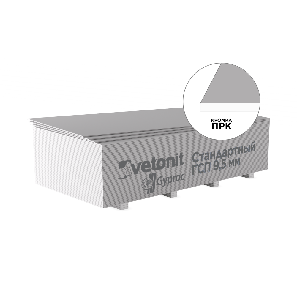 Наличие на лицевой стороне плиты отметок, указывающих места крепления саморезов под два шага каркаса (400 и 600 мм), ускоряет монтаж конструкций из ГСП Vetonit (Gyproc),Экологичность.