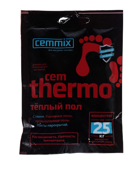 Специализированная высокоэффективная пластифицирующая и упрочняющая добавка для заливки теплых полов – повышает подвижность, растекаемость строительной смеси. Смесь приобретает гомогенную и плотную структуру. Процесс выравнивания пола осуществляется легче и поверхность бетона получается гладкой