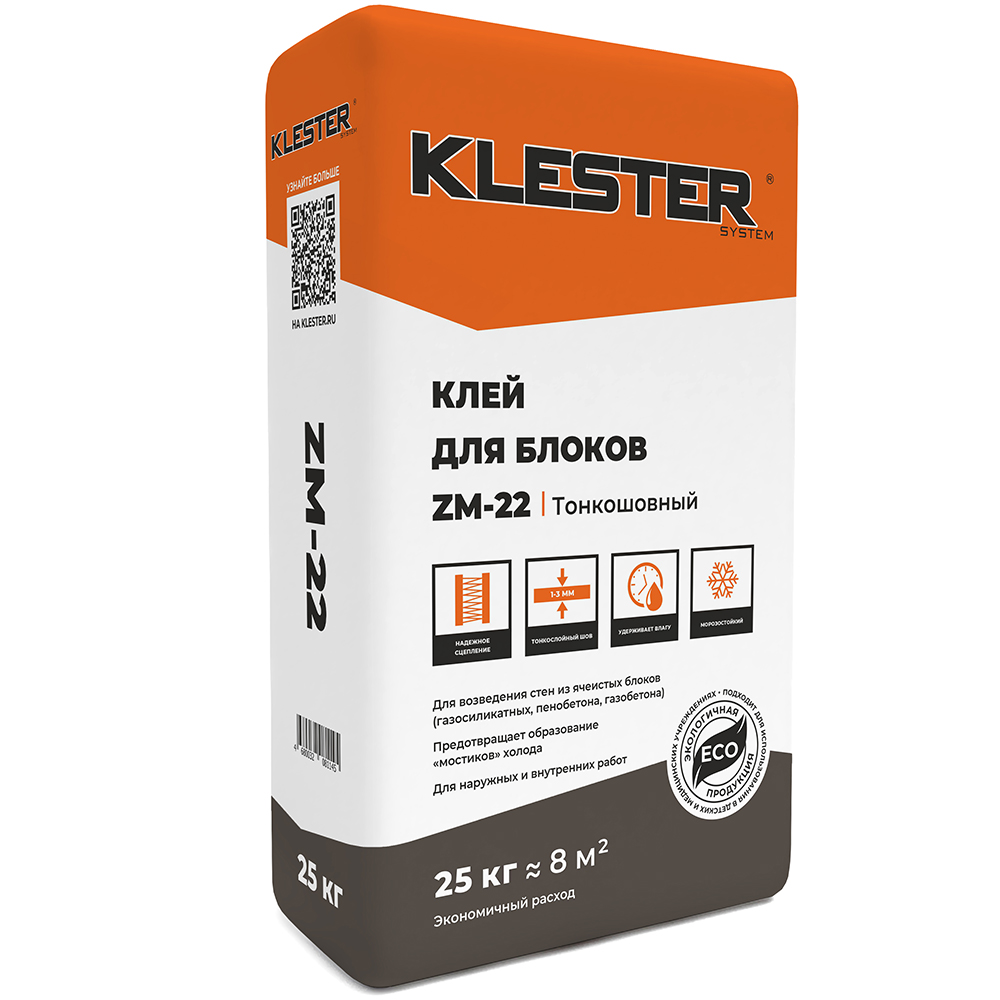 Клей для газосиликатного блока KLESTER ZM-22, 25 кг