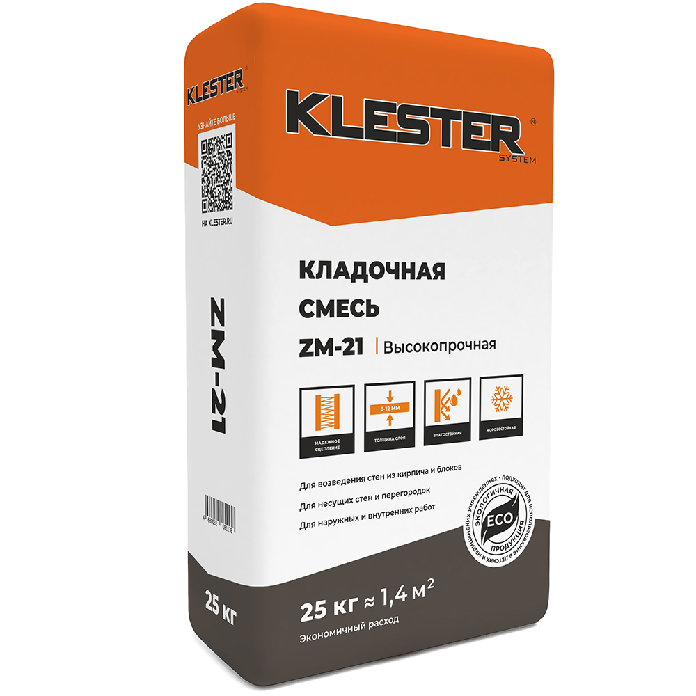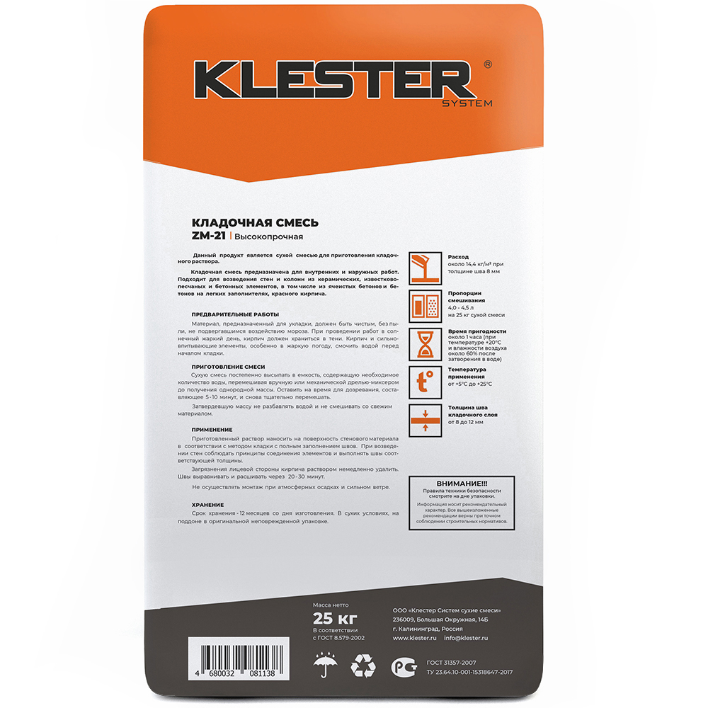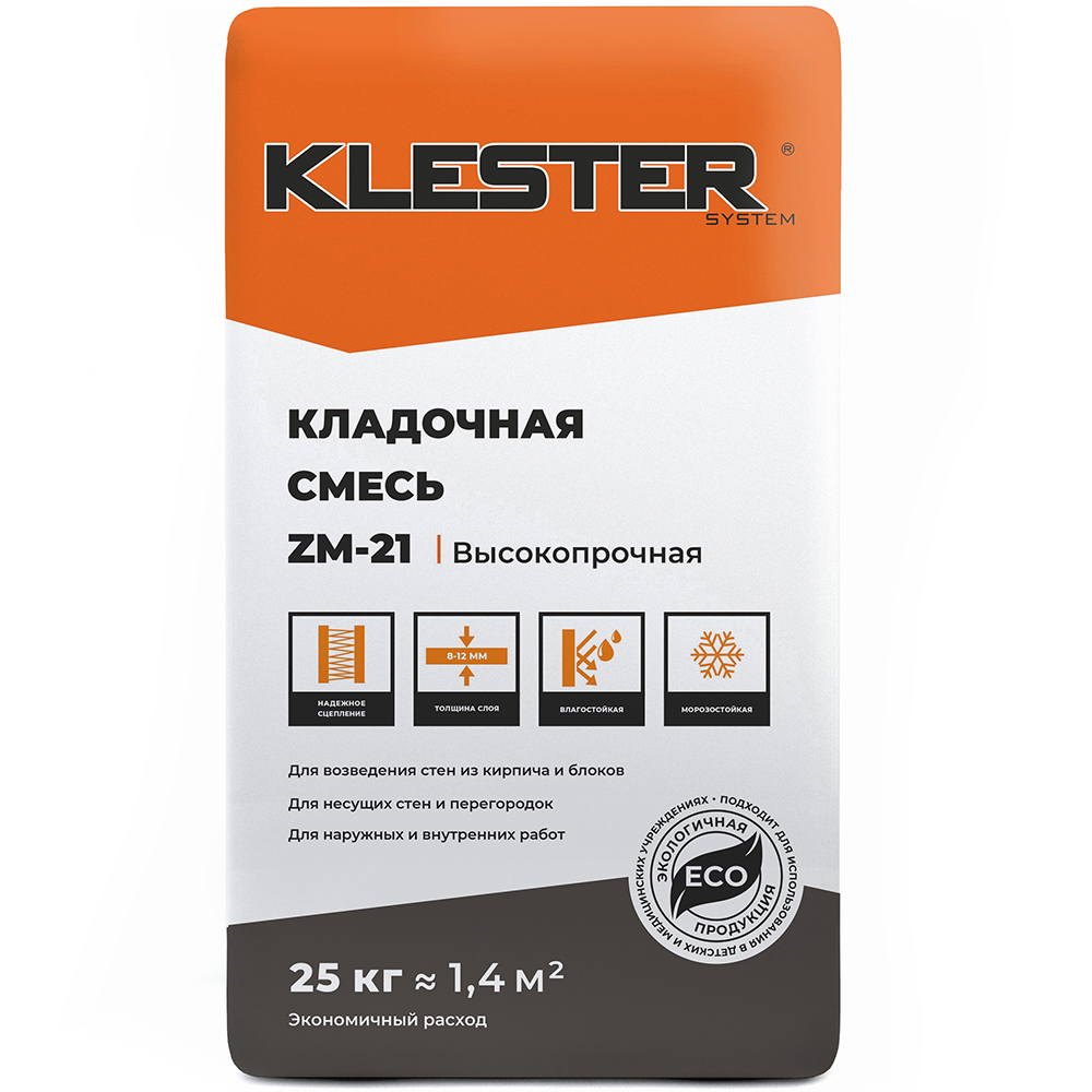 Раствор кладочный KLESTER ZM-21, 25 кг