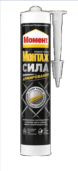 Жидкие гвозди Момент Монтаж Сила Армирования 400 г - универсальный монтажный клей на основе водной дисперсии полиакрилатов с добавкой армирующих волокон.