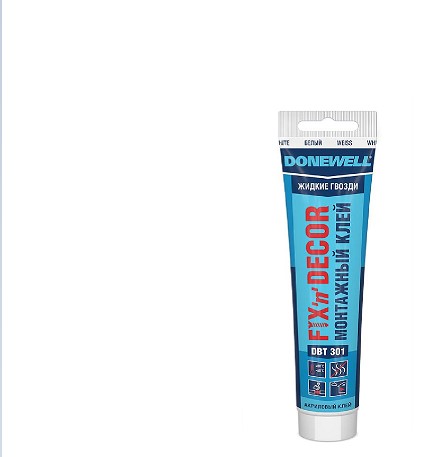 Высококачественный универсальный акриловый клей DONEWELL® FIX‑N‑DECOR специально разработан для приклеивания изделий из древесины, ДСП, ДВП, EPS, XPS и UPVC на бетонные, кирпичные, каменные, металлические, оштукатуренные и деревянные поверхности. Идеально подходит для сборки деревянных конструкций, приклеивания гипсокартона, OSB‑плит, декоративных элементов, подоконников, утеплителей различных видов.
