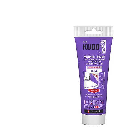 Высококачественный универсальный акриловый клей «жидкие гвозди» KUDO® в большом тюбике специально разработан для приклеивания изделий из древесины, ДСП, ДВП, EPS, XPS и UPVC на бетонные, кирпичные, каменные, металлические, оштукатуренные и деревянные поверхности. Идеально подходит для сборки деревянных конструкций, приклеивания гипсокартона, OSB‑плит, декоративных элементов, подоконников, утеплителей различных видов.
