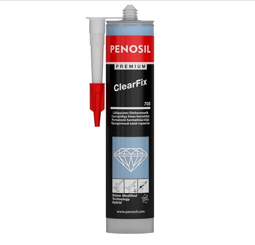 PENOSIL Premium ClearFix 705 - Универсальный прозрачный клей-герметик на базе гибридных полимеров для приклеивания и уплотнения стекол, зеркал и прочих прозрачных материалов. Подходит для использования на большинстве базовых поверхностей, в том числе влажных, не обуславливает коррозию металлов.