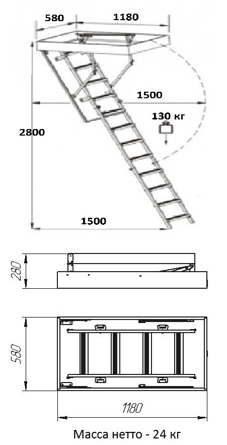 Чердачная лестница удобная и функциональная складная конструкция для подъема на чердак или мансарду. Применяется в условиях ограниченного пространства и невозможности поставить стационарную лестничную конструкцию. Изготовление деревянных элементов производится из сосны. В сложенном виде позволяет экономить пространство. Лестница состоит из четырех секций, легко убирается в потолок. Проста в установке.