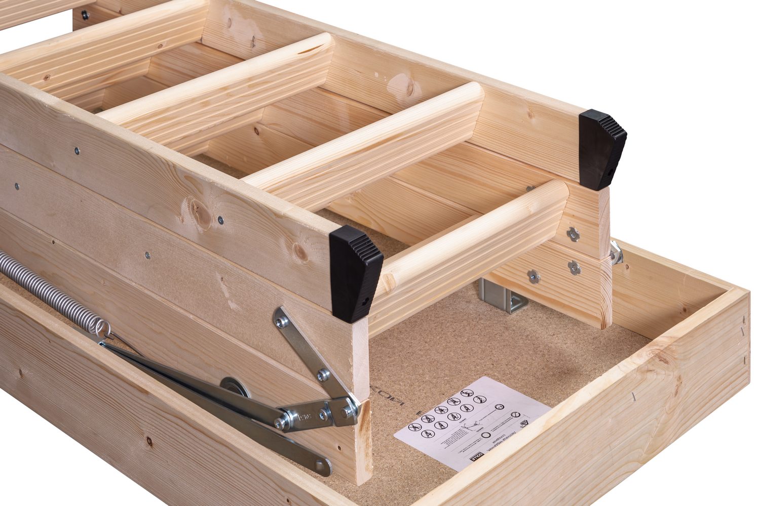 Обеспечивает легкий, комфортный подъем на верхние этажи частных домов, загородных коттеджей и дач. В изготовлении лестницы используется дерево хвойных пород. Лестница оснащена люком из водостойкого ДСП, который можно перекрасить в подходящий для интерьера цвет.