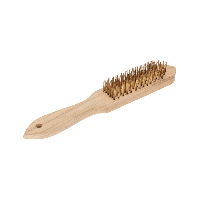 Латунированное покрытие значительно продлевает срок службы щетки. Эргономичная рукоятка, изготовленная из дерева, обеспечивает хороший захват и удобство в работе.