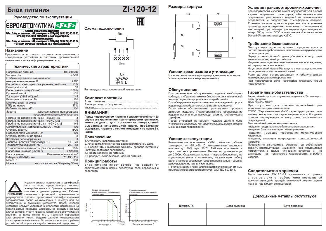 Блок питания импульсный ZI-120-12V 120W "F&F"