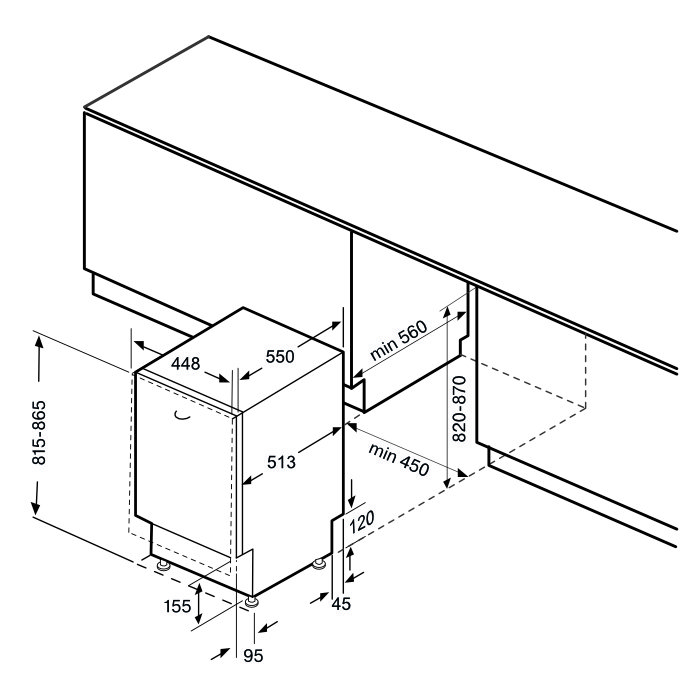 Размер ниши (В*Ш*Г): 820*450*570 мм