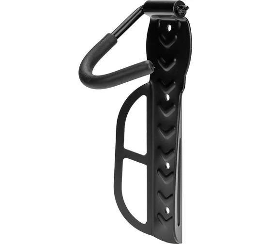 Изготовлен из высокопрочной стали: выдерживает нагрузку до 30 кг. Крюк покрыт ABS-пластиком для защиты обода от царапин. Угол поворота крюка составляет 180°, что позволяет размещать колеса разных размеров от 12 до 29 дюймов.