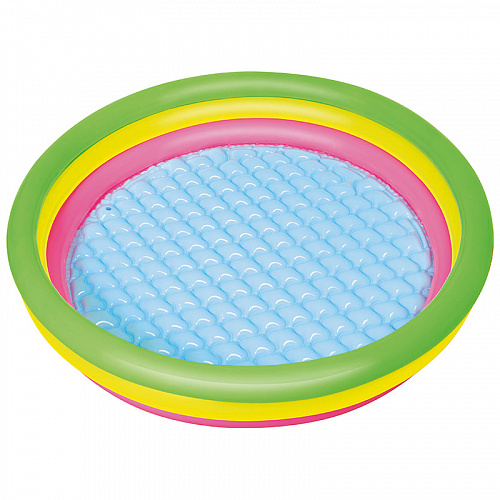 Надувной круглый бассейн Bestway для детей от 2 лет. Изготовлен из высококачественного винила, устойчивый, надежный и безопасный. Имеет мягкие стенки с широкими бортиками и мягкое дно.
