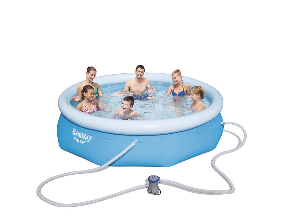 Надувной бассейн Bestway Fast Set отличается простотой и легкостью. Стенки бассейна, выполнены из армированного ПВХ, внешний слой - полиэстер для особой прочности. Поддержка бортов осуществляется при помощи надувного кольца, которое поднимается по мере наполнения бассейна и расправляет его стенки.