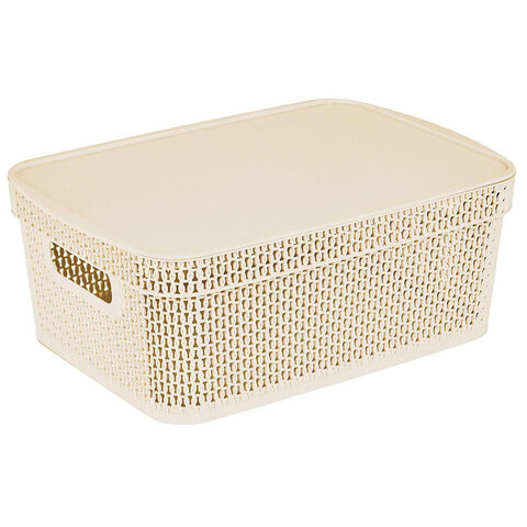 Корзина прямоугольная Ajur 11л с крышкой слоновая кость