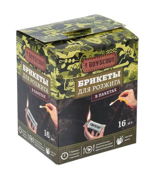 Брикеты для розжига BOYSCOUT в инд. упаковке, 16 штук в боксе (отгрузка кратно 12 шт.) / 12