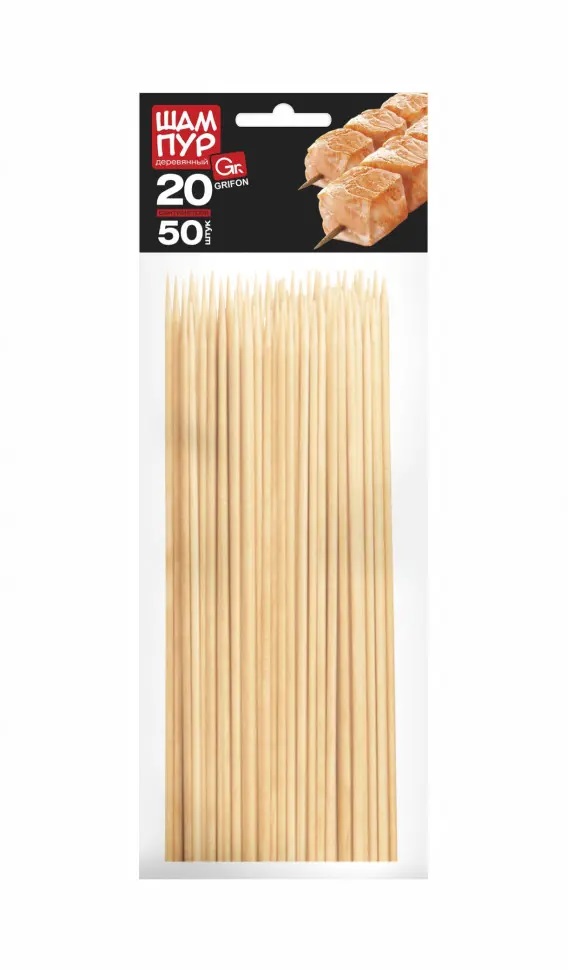 Шампуры деревянные GRIFON, 200 мм в упаковке, 50 шт. /115/1