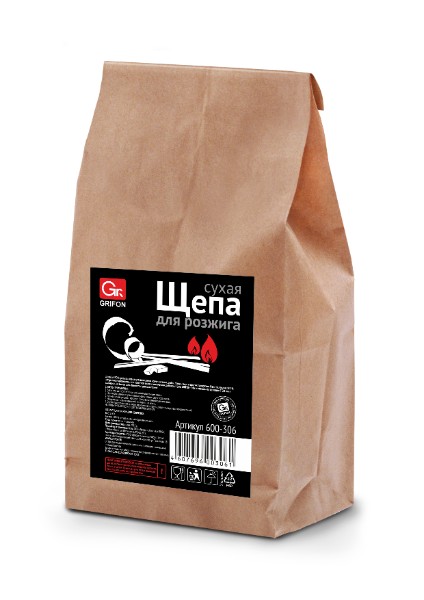 Щепа для розжига GRIFON, сухая в бумажном пакете, 300 гр./20/1