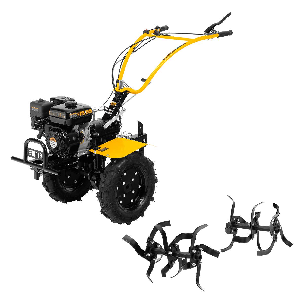 Комфортное управление — регулятор оборотов двигателя и кнопка пуска выведены на рукоятку перед оператором, поэтому можно оперативно менять режим вспашки, не наклоняясь.